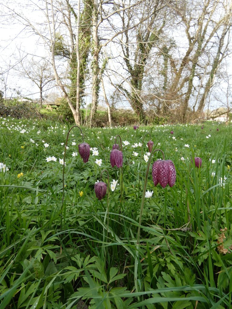 Saint-Palais-de-Négrignac, le 16 mars 2026: la Fritillaire pintade (au 1er plan) et l’Anémone des bois (au 2nd plan) annoncent l’arrivée du printemps