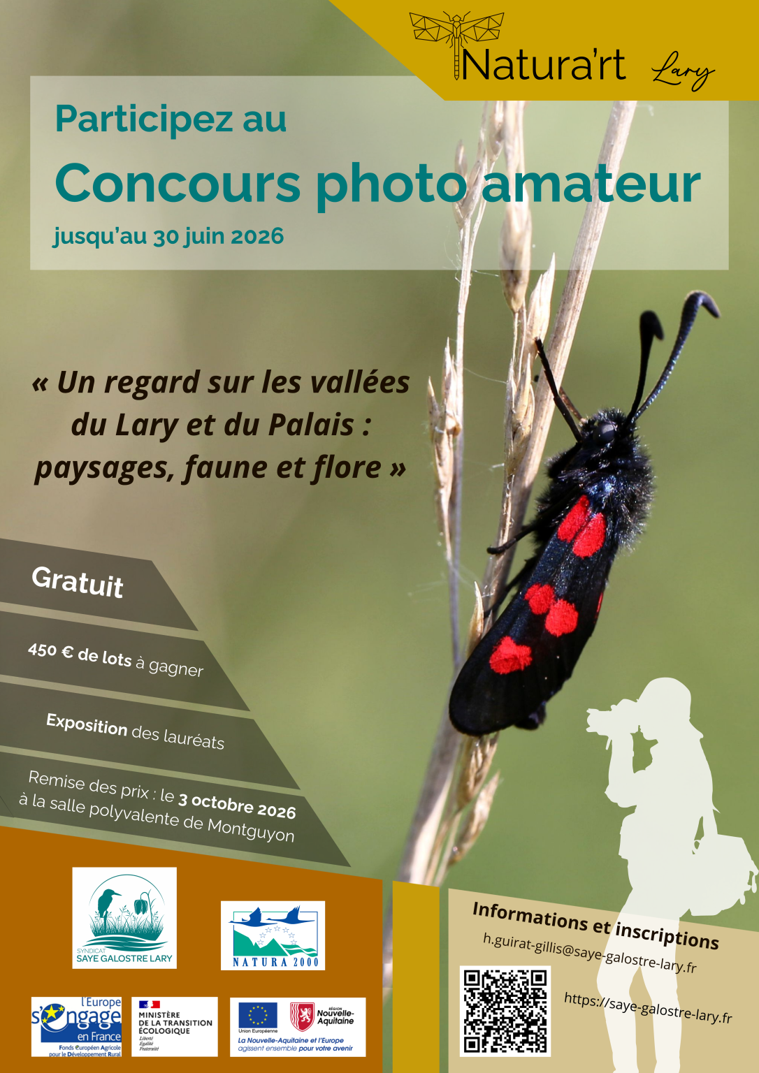 Dans le cadre de l’évènement NATURA’RT Lary du 3 octobre 2026, le Syndicat lance son 2eme concours photographique pour tous les amateurs de 12 à 77 ans et + !