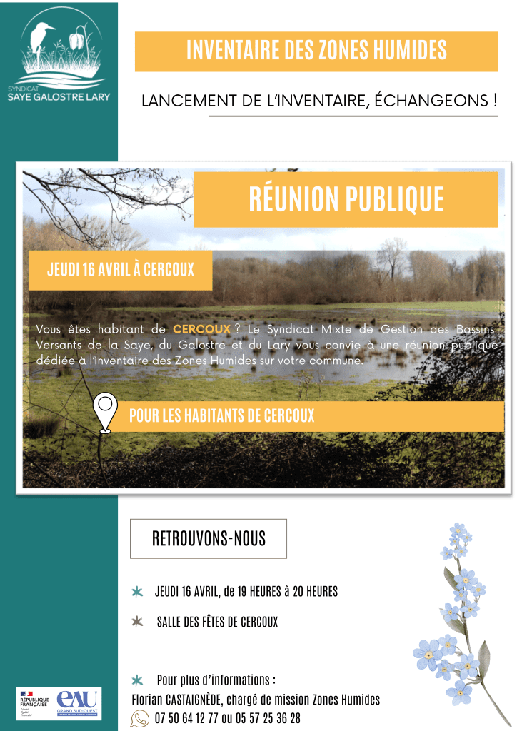 Ambitionnant de réaliser un Atlas des Zones Humides qui enrichissent notre patrimoine naturel local, le Syndicat Mixte de Gestion des Bassins Versants de la Saye, du Galostre et du Lary (SMGBVSGL) s’apprête à lancer l’inventaire des milieux humides sur la commune de Cercoux (17).